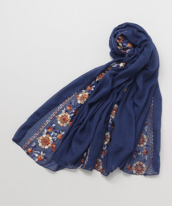 華やかな花の刺しゅうが目を惹く大判ストール。柔らかな大判ストールなので羽織ってもお使いいただけます。ベーシックな色合いでコーデに取り入れやすく、お出かけのお供にぴったり。可愛らしいお花がお顔周りを華やかに演出します。