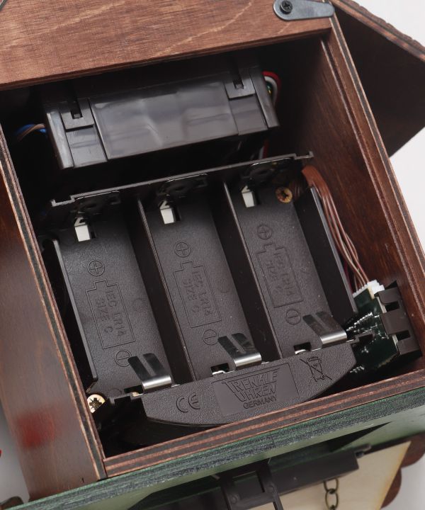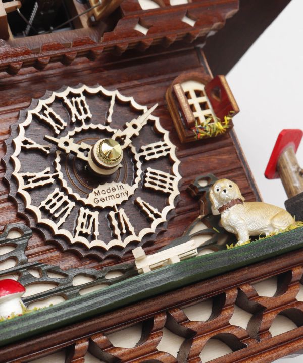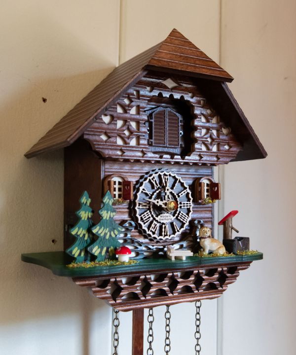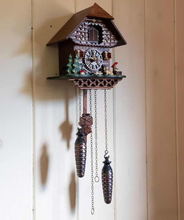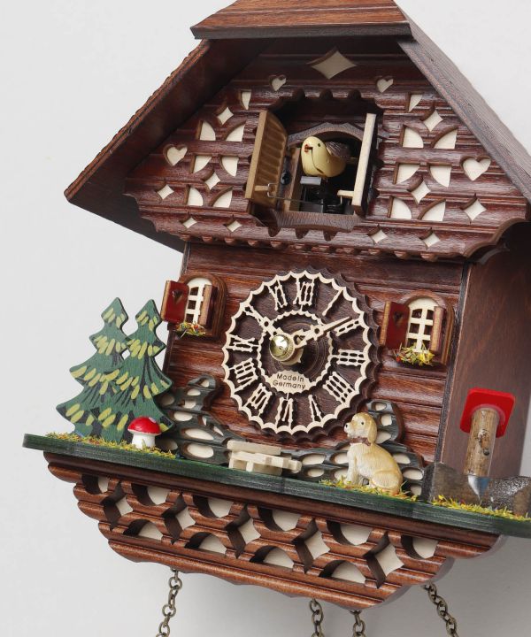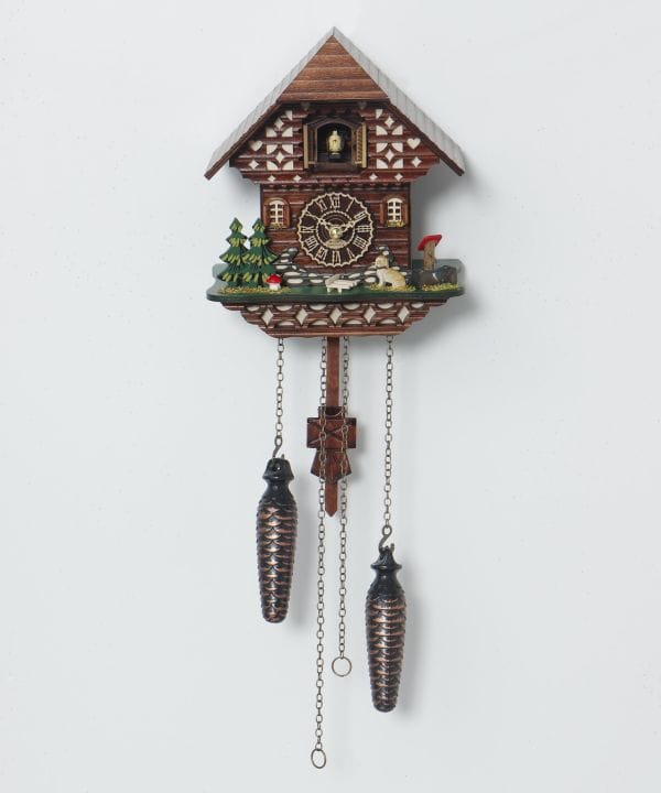ドイツ・シュヴァルツヴァルトの工房から仕入れた木製の鳩時計。繊細な彫刻が美しい、職人さん手作りのアイテム。定時になると窓から鳩が飛び出し、鳴き声と音楽を奏でます。音楽はON・OFFの切り替えが可能。