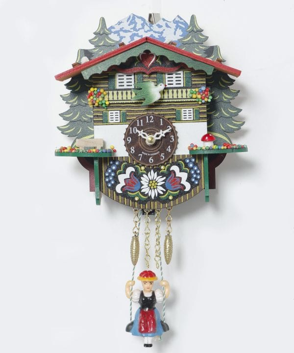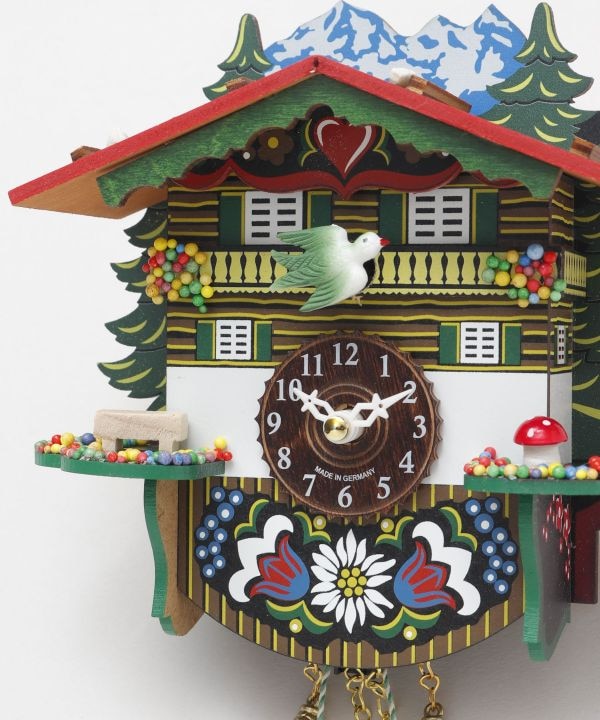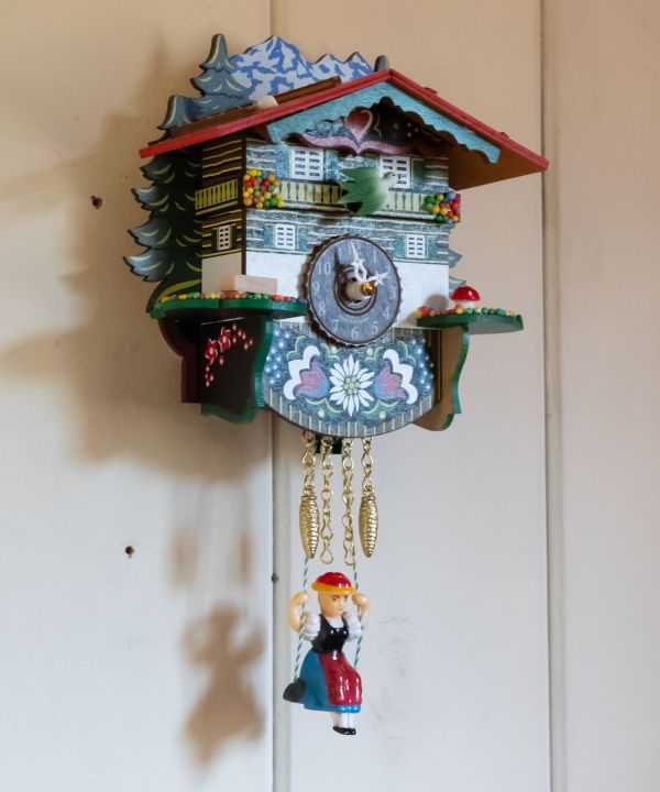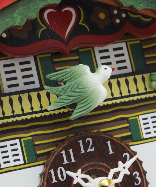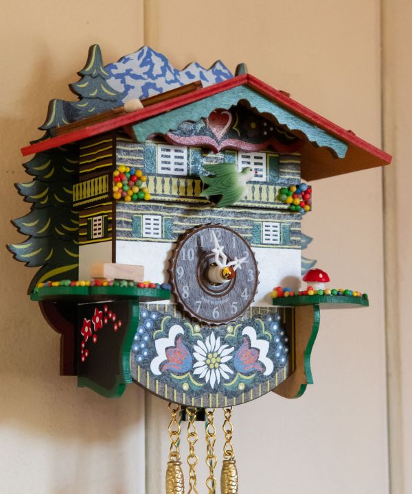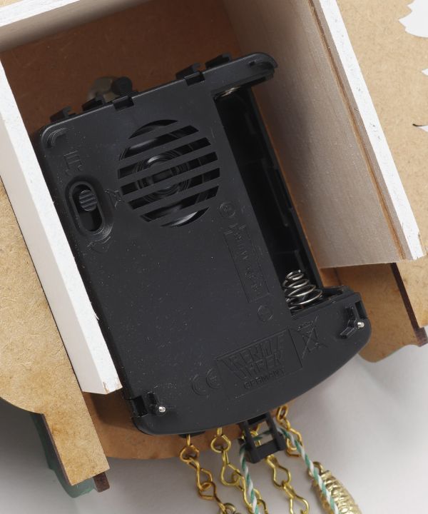 ドイツ・シュヴァルツヴァルトの工房から仕入れた木製の鳩時計。繊細な彫刻が美しい、職人さんの手作りのアイテム。定時になると鳩が鳴き声と共に動き出すか、音楽を奏でるかを切り替えられます。鳩と音楽どちらもON・OFFの切り替えが可能。