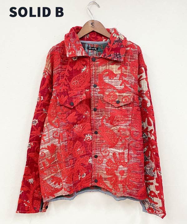 《世界に一つしかない一点もの》インドの約50〜70年前のビンテージ布「カンタ」をリユースして、刺繍と共にリメイクしたジャケット。「カンタ」とはインドなどで古くから伝わる伝統的な刺し子刺繍の布のこと。大切に使われた古布を重ねて刺し子刺繍を施すことで、より魅力的な新しい布として蘇ります。作り手の感性で新しく生まれ変わったジャケットは、一つとして同じものはありません。バイヤーがひとつひとつチェックし、この特別な一点ものジャケットを仕入れてきました。脈々と受け継がれる伝統、ハンドクラフトの魅力を贅沢に味わっていただける一点です。胸元と腰位置の左右にポケット付き。ぜひ裏地の柄まで存分にお楽しみください。