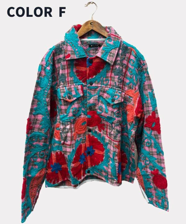 《世界に一つしかない一点もの》インドの約50〜70年前のビンテージ布「カンタ」をリユースして、刺繍と共にリメイクしたジャケット。「カンタ」とはインドなどで古くから伝わる伝統的な刺し子刺繍の布のこと。大切に使われた古布を重ねて刺し子刺繍を施すことで、より魅力的な新しい布として蘇ります。作り手の感性で新しく生まれ変わったジャケットは、一つとして同じものはありません。バイヤーがひとつひとつチェックし、この特別な一点ものジャケットを仕入れてきました。脈々と受け継がれる伝統、ハンドクラフトの魅力を贅沢に味わっていただける一点です。胸元と腰位置の左右にポケット付き。ぜひ裏地の柄まで存分にお楽しみください。