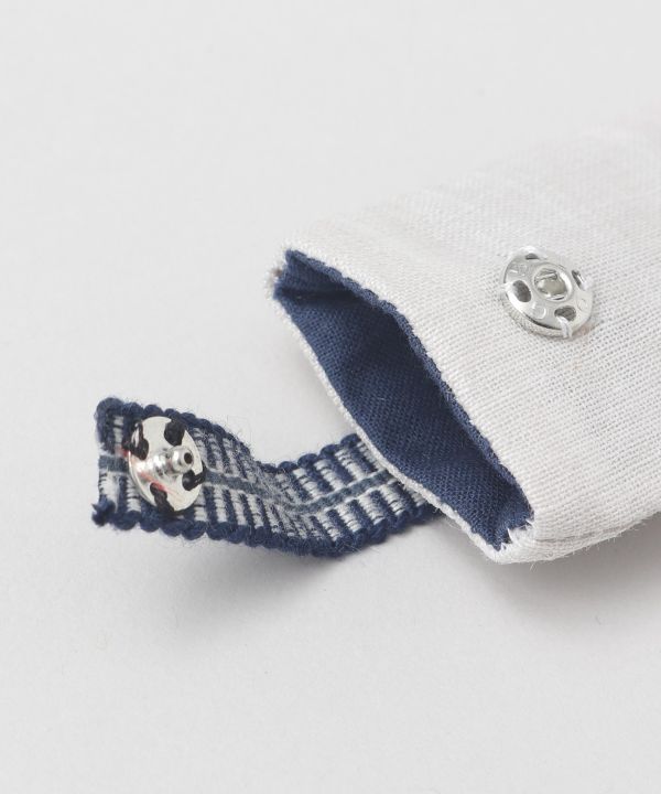 アマテラス/ツクヨミ/スサノオの刺繍がワンポイントの御守。近江麻を使用しています。悪を祓う力があると云う麻生地で作った塩入れ。紐には倉敷市で作られた丈夫な真田紐を使用しています。