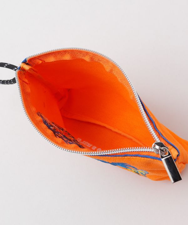 ハワイの風景やモチーフを刺しゅうで表現したポーチ。パラコードの持ち手付きで持ち運びにも便利。カラフルな配色と、ハワイの人気モチーフが元気を与えてくれる。