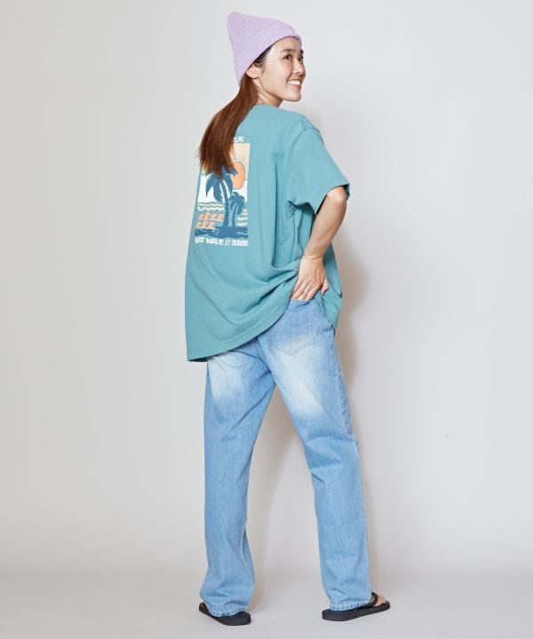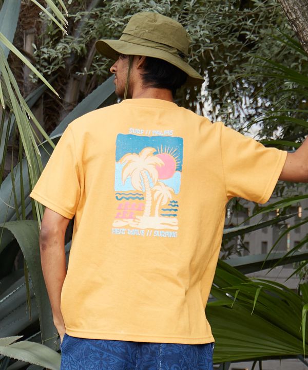サーフシーンをベースにしたレトロなアートが描かれたプリントメンズTシャツ。カラフルな配色とユーモラスなタッチのアートが、私たちをロコ気分にさせてくれます。ユニセックスでお使いいただけるリラクシングなシルエットです。
