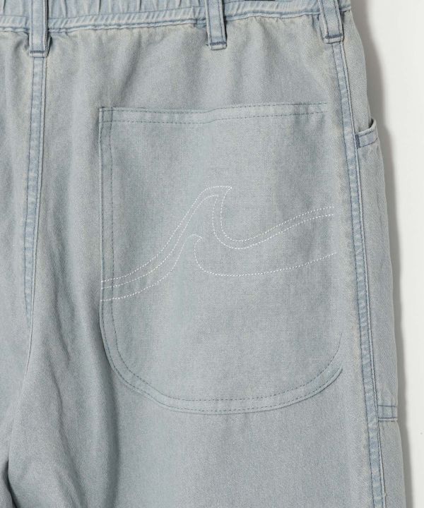 加工感のある風合いの薄手のデニムメンズパンツ。後ろポケットのワッペンと刺しゅうがサーフスタイルにぴったり。着回ししやすいデザインで、あると便利な一枚に。