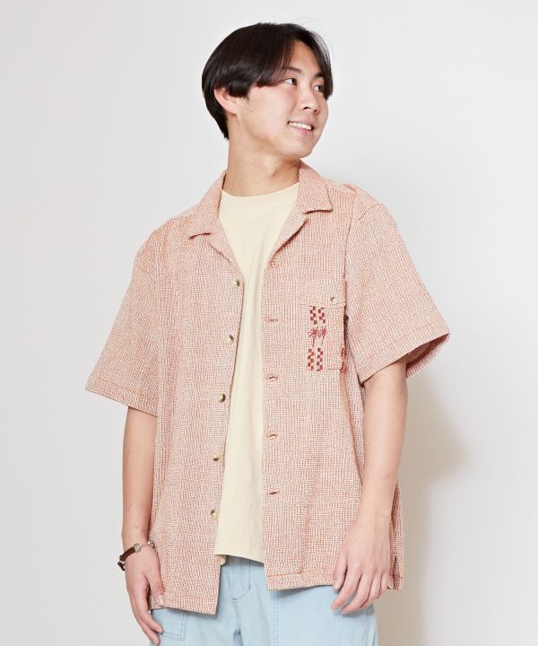 ざっくりとした風合いのある綿素材のメンズシャツ。普段使いしやすいナチュラルな質感とカラーでビーチテイストにぴったりな一枚。ポケットのパームツリーの刺しゅうがポイント。