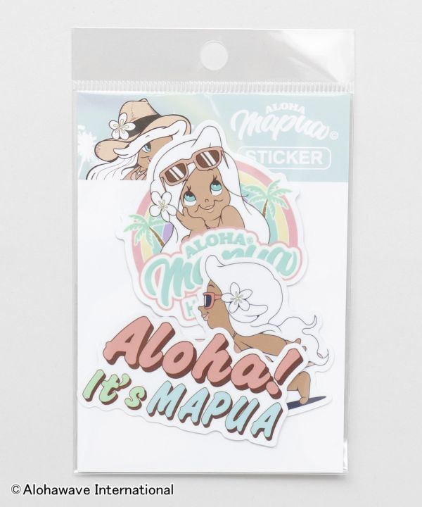 【Kahiko×Aloha Mapua】サーフィンとファッションを愛する365日HAWAIIを感じられるキャラクター、ALOHA MAPUA(アロハマプア)のコラボステッカー。3枚セットなのでスマホケースに入れてもかわいい。