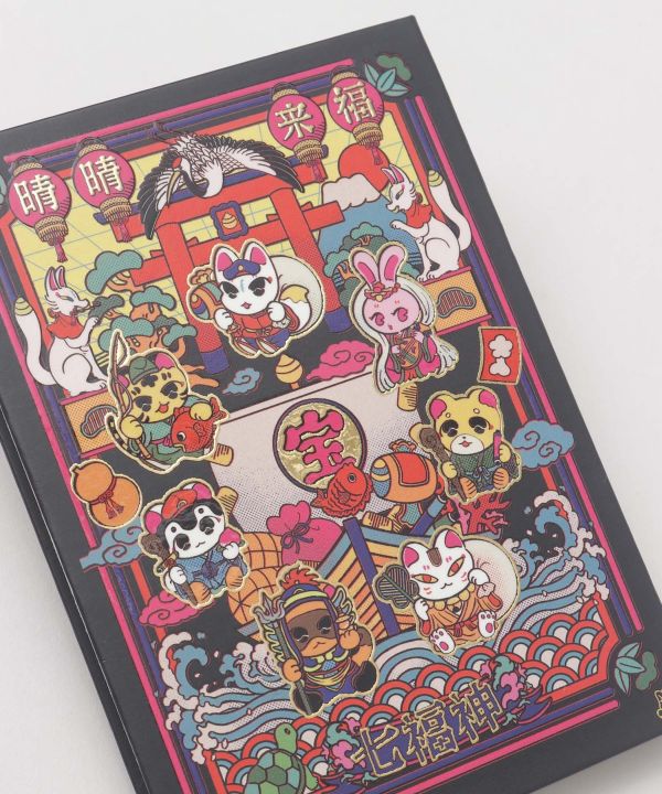 【中村杏子×倭物やカヤ】可愛らしい表情の動物たちをポップな色使いで表現。贅沢に箔を使った技法で、御朱印帳としてはもちろん、日誌やメモ帳としても重宝します。御朱印帳を留めるゴム付き。※ゴムの色はお選びいただけません。