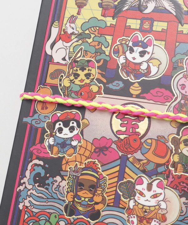 【倭物やカヤ×中村杏子】鮮やかな色彩で描かれた動物たちが目を引く御朱印帳。しっかりとした装丁に留めゴム付きで持ち歩きにも便利。ポップな配色と贅沢な箔使いがきらりと映え、神社仏閣巡りのおともにはもちろん、旅の思い出帳やアートブックとしても楽しめます。※留めゴムの色は一つ一つ色が異なるアソートです。お色は選べませんので予めご了承くださいませ。