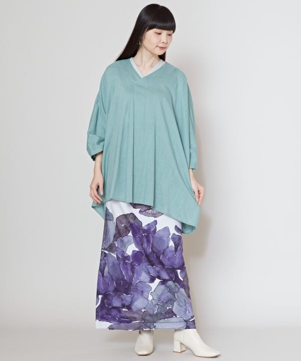 レーヨン麻素材を使用した着心地の良いトップス。ゆったりとしたシルエットは、裾から風が通りやすいため暖かい時期でも快適に過ごせます。
