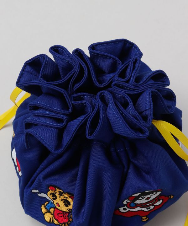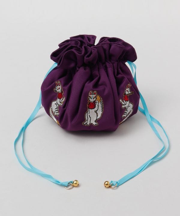 【中村杏子×倭物やカヤ】可愛らしい表情の動物たちをポップな色使いで表現した巾着ポーチ。スマホやお財布などを持ち歩くのに便利なサイズ。ヒモには小さな鈴が付いていて、歩くたびにちりんと可愛く鳴ります。