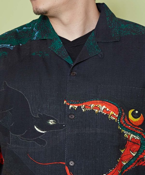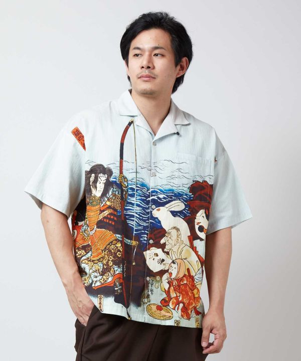 日本の美をまとうNIPPON ARTシリーズのアロハシャツ。浮世絵をモチーフにリデザインした和の意匠が印象的です。刺し子のような風合いを持つコットンドビー生地を使用し、さらりとした着心地に仕上げました。がしゃどくろや猫、兎など多彩な柄展開で、M・L・XLの3サイズ展開。性別を問わず楽しめる上品な和柄シャツです。