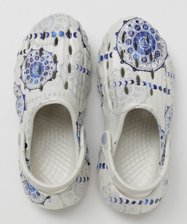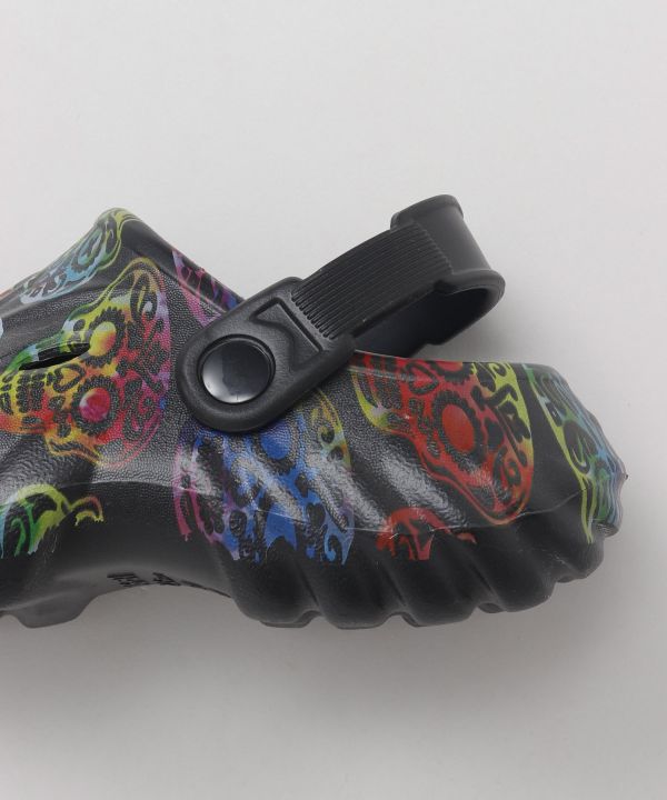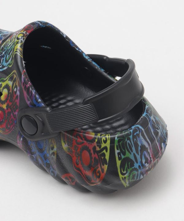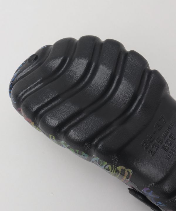 エキゾチックな柄が目を惹くメンズサボサンダル。厚みのあるクッションソールで疲れにくく、バックストラップ付きで安定感も抜群。リゾートにも街歩きにも活躍。