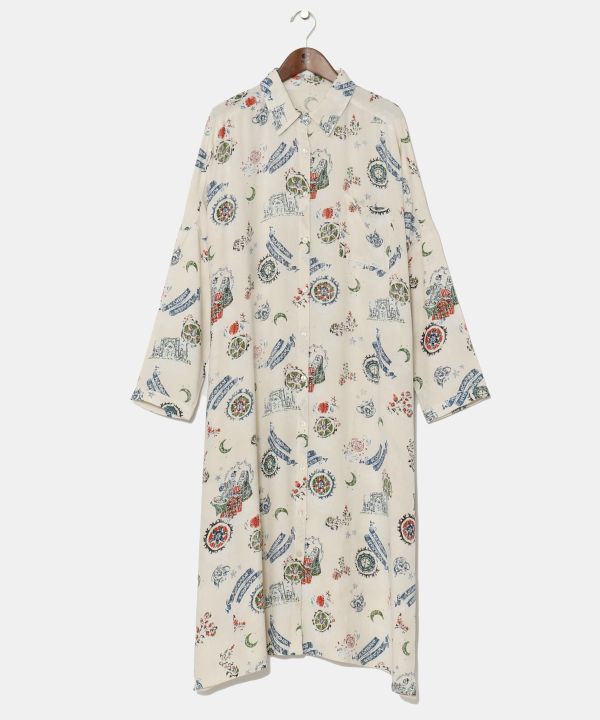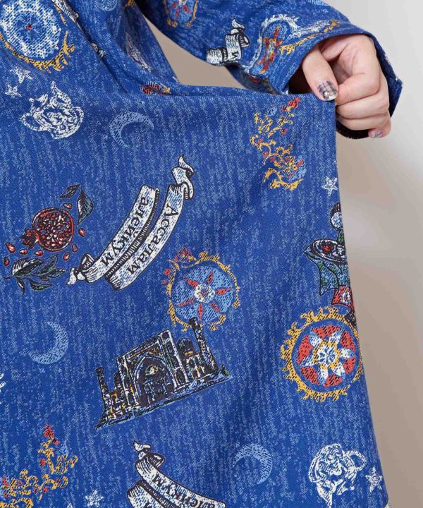 旅するカラベラがウズベキスタンに到着!ウズベキスタン国旗のカラーリングをメインに、国旗に描かれている月と星も忍ばせた目でも楽しめるワンピース。〜南インドからウズベキスタンに降り立った彼らは、街で手に入れたドッピをかぶり茶屋で一息つくのであった〜