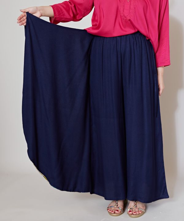 アフリカのキテンゲモチーフの柄を使用した、無地×柄の切り替えが楽しいラップパンツ。巻きスカート風のシルエットで、柄と無地の前後2WAYで楽しめる。レーヨン素材でさらっと着られる一着。ラフィキはスワヒリ語で「友達」という意味。