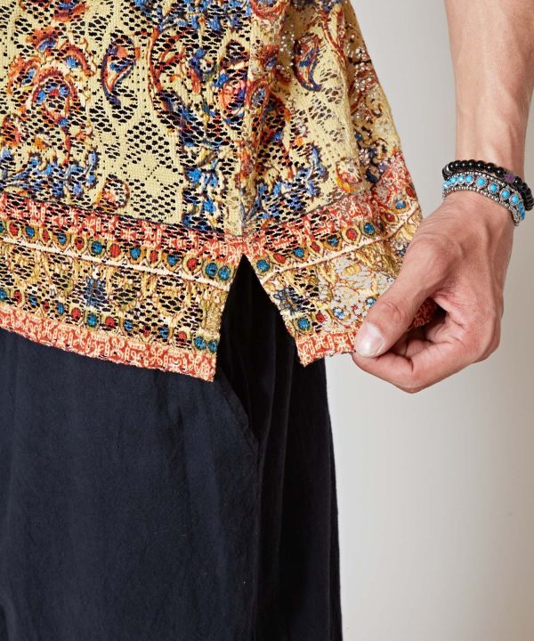 インドのペイズリーや花柄をプリントしたメンズシャツ。トレンド感のある涼し気レース素材に注目。レイヤードスタイルや羽織として、コーデが楽しめる一品。