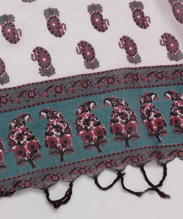 サラッとしたインド綿を使用した伝統柄の正方形スカーフ。首に巻いたり、バッグにつけたり、ヘアアレンジなどいろいろな使い方ができておすすめ。