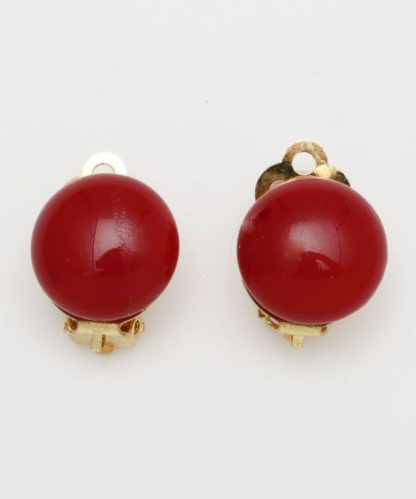 ころんと丸いシルエットがかわいらしい、チェコガラスでつくられたレトロな雰囲気のイヤリング。