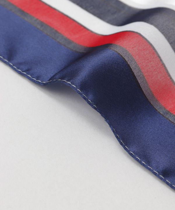 なめらかな肌触りの、ボーダー柄スカーフ。首に巻いたり、ヘアバンドとしても使えるサイズ感。こなれ感を演出してくれるアイテムです。