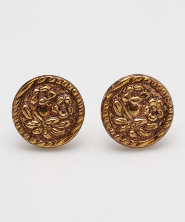 チェコのガラスボタンをアレンジした、小ぶりなポストタイプのピアス。コーデに馴染みやすいやさしいカラーで、レトロな花柄が素敵。ガラスボタンは、現地の工房で昔ながらの手作業でひとつひとつ丁寧に作られています。