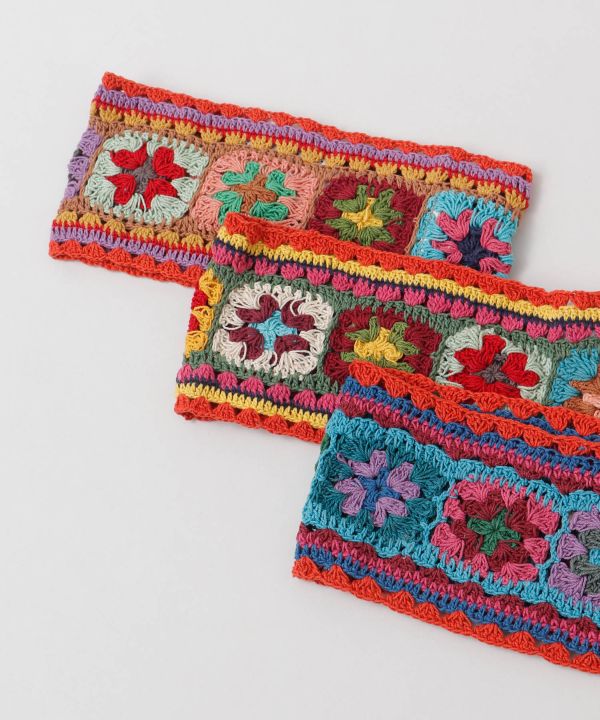 ネパールコットン100%の人気の手編みクロッシュヘアバンド。手編みの花柄模様はコーディネートに加わるだけで雰囲気を作ってくれるアイテム。全てアソートデザインとなっており、世界に一つも同じものはないあなただけのアイテム。※一つ一つ柄の出方や生地が異なります。※一点をお届けします。