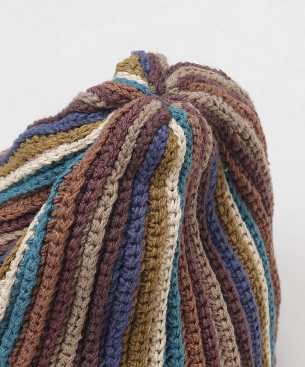 霜降りニットが素朴な風合いの[COLORFUL ASSORT]と落ち着いた色合いの配色[DARK ASSORT]の2種類をご用意。リブ編みのネパールコットンCAPはさわり心地が良く、伸縮性に優れています。リブを折り返したり使い方自由。自分のしっくりくる被り方を探せるいちおしアイテム。