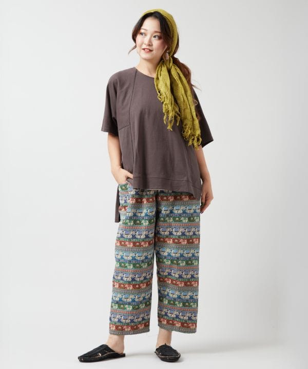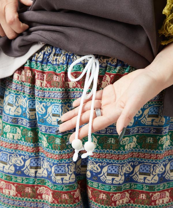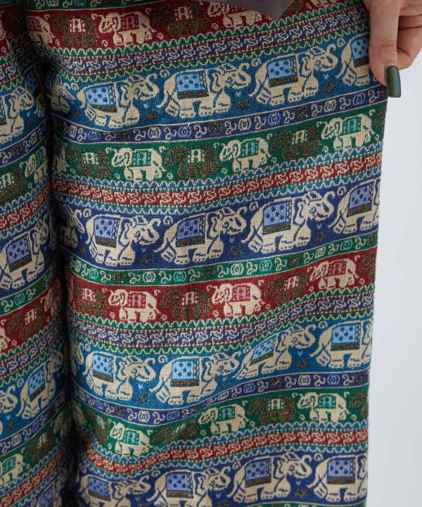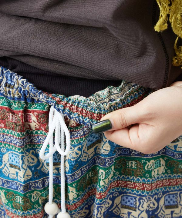 【タイ直輸入】カラフルな象が印象的な、目を惹くメンズパンツ。柔軟性がありながら張りのある生地感が魅力。