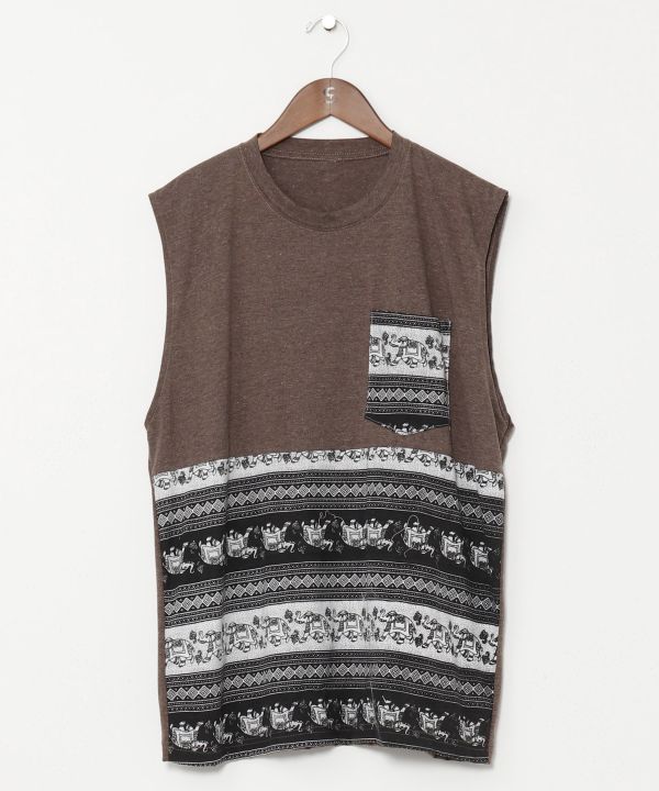 【タイ直輸入】ボーダーに象のプリントがされたタンクトップ。胸元にポケットがあるのも嬉しいポイント。インナーとしても使える一枚。