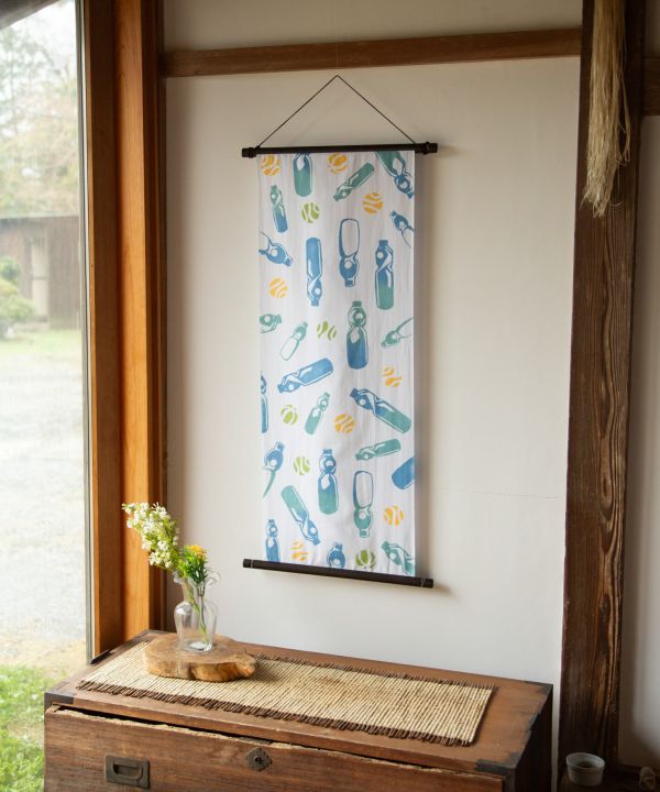 涼しげなラムネとビー玉を描いた手拭い。どこか懐かしい夏祭りの情景を思わせます。飾れば空間に清涼感を添え、日常使いはもちろん、贈り物としてもおすすめの一枚です。