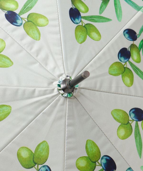 南仏プロバンスの代表的な植物柄をモチーフにデザインされた日傘。晴雨兼用で8本骨の丈夫な形。持ち手が太くて握りやすく、タッセルがアクセントに。ワンタッチで開くジャンプタイプで使いやすいです。遮光率90%以上。