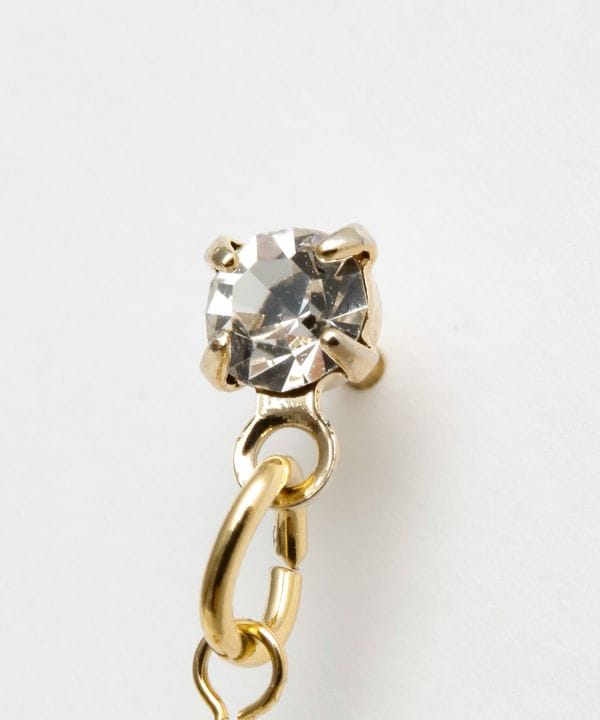 ナチュラルカラーのチャームとシェルモチーフのピアス。きらりと光るラインストーンがポイントです。