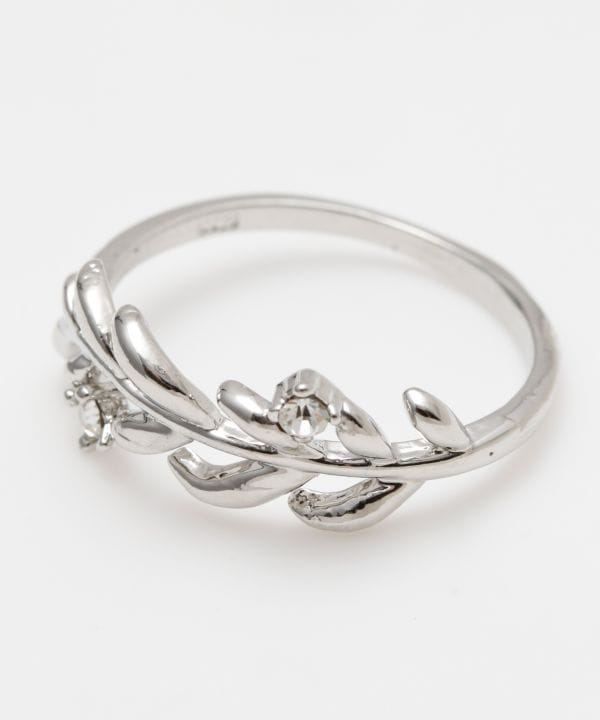 リーフモチーフのリング。ハワイの自然をイメージしたデザインです。2つのラインストーンがポイント。