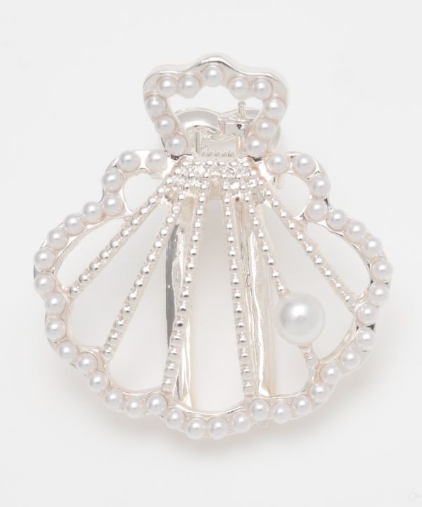 小さなシェルモチーフのパールがポイントのヘアクリップ。ヘアアレンジにおすすめです。