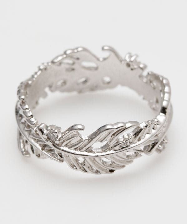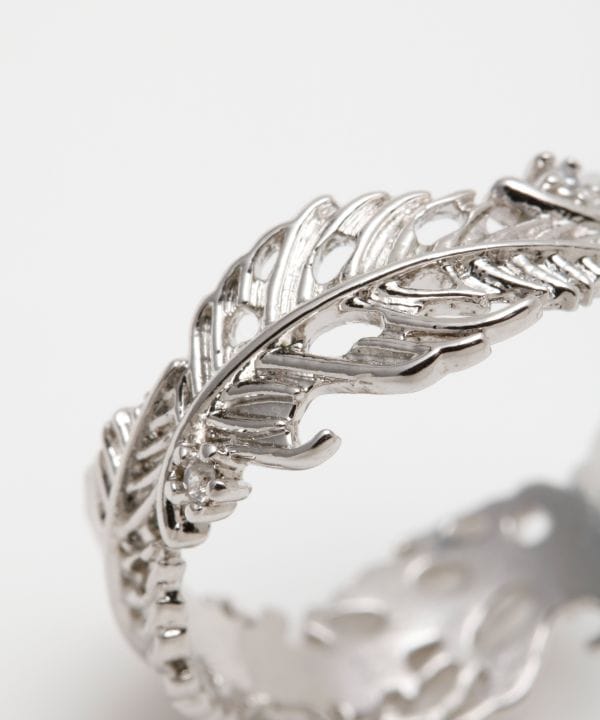 リーフモチーフのリング。きらりと光るさり気ないラインストーンがポイントです。