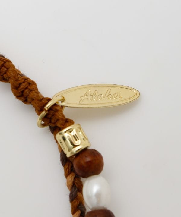 プルメリアモチーフがウッド調のナチュラルテイストなアンクレット。ポリネシアントライバルがポイント。優しさの中に力強さがあるハワイらしいデザインです。