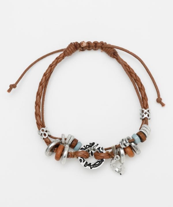 ポリネシアを感じるメンズアンクレット。フィッシュフックやウッドビーズが力強いデザインです。