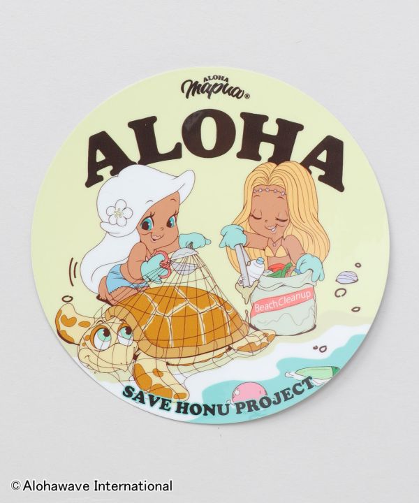 チャリティプロジェクト「SAVE HONU PROJECT」。ハワイのウミガメの保全活動を目的に、売上の一部が寄付されます。【Kahiko×Aloha Mapua】サーフィンとファッションをこよなく愛するキャラクター「Aloha Mapua (アロハマプア)」のデザインになっています。