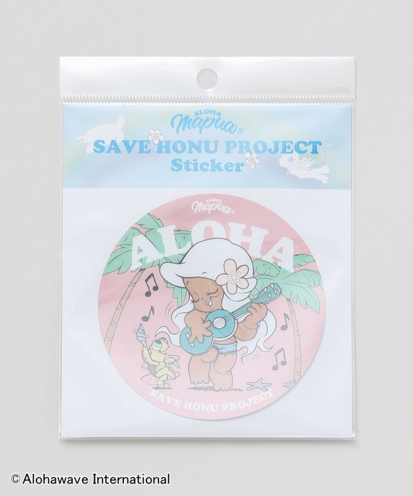 チャリティプロジェクト「SAVE HONU PROJECT」。ハワイのウミガメの保全活動を目的に、売上の一部が寄付されます。【Kahiko×Aloha Mapua】サーフィンとファッションを愛する、365日ハワイを感じられるキャラクター「ALOHA MAPUA(アロハマプア)」のデザインステッカー。