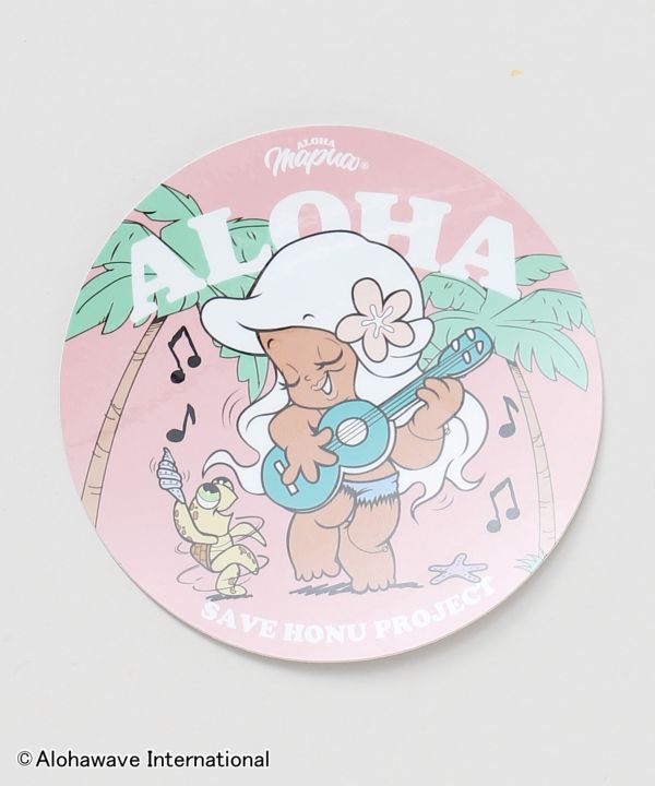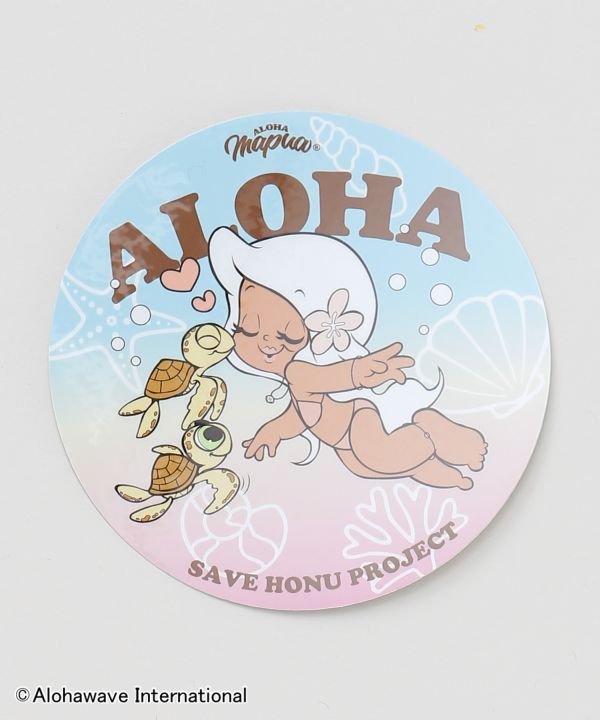 チャリティプロジェクト「SAVE HONU PROJECT」。ハワイのウミガメの保全活動を目的に、売上の一部が寄付されます。【Kahiko×Aloha Mapua】サーフィンとファッションを愛する、365日ハワイを感じられるキャラクター「ALOHA MAPUA(アロハマプア)」のデザインステッカー。