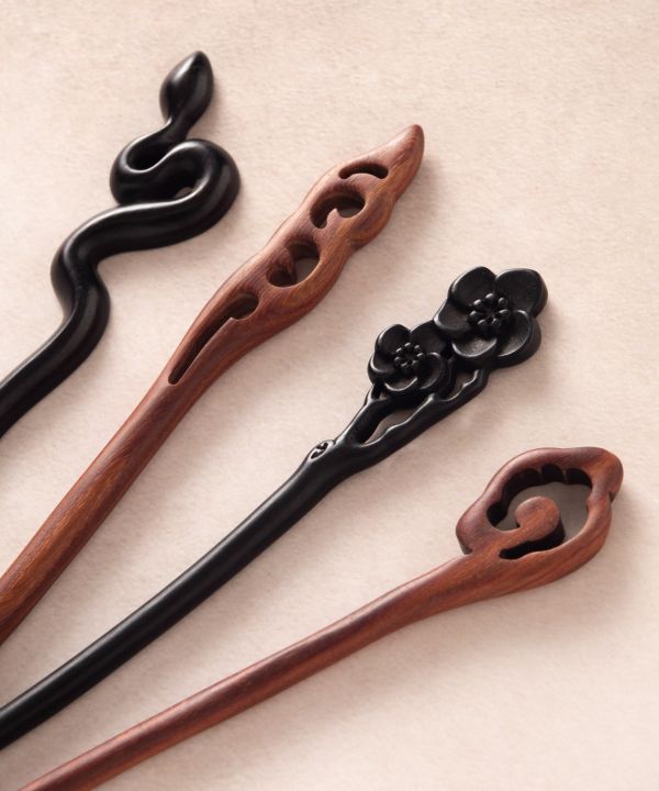 動物モチーフを木彫りで表現したかんざし。滑らかでしっかりとした軸で、髪の毛をしっかりとまとめることが出来ます。普段の装いはもちろん、着物に合わせてもシックな印象に。