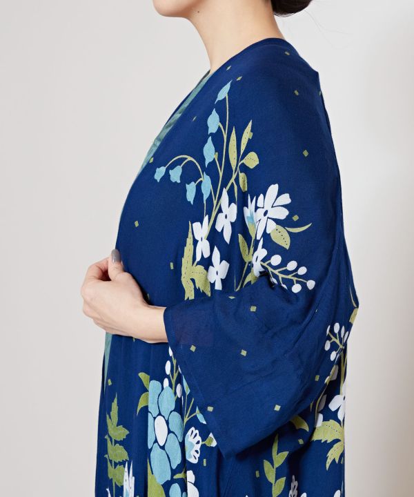 軽く手触りの良いレーヨン素材のUVカット羽織。清涼感があり、日差しよけや、夏の冷房対策にピッタリの一枚です。裾にあしらったフリンジが女性らしさをより演出してくれます。