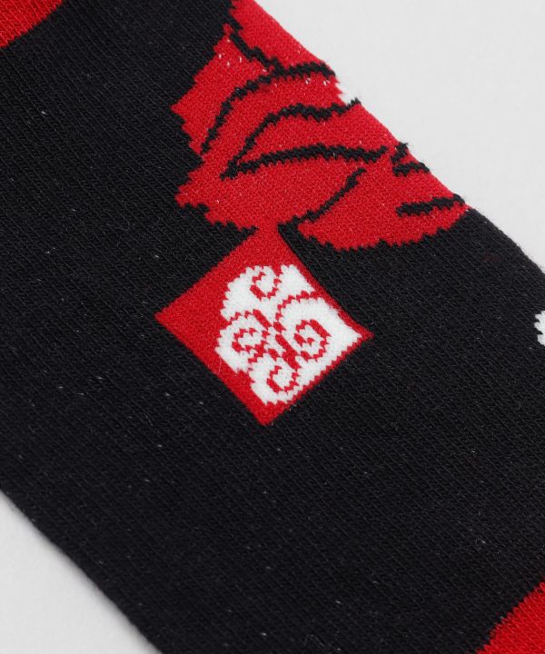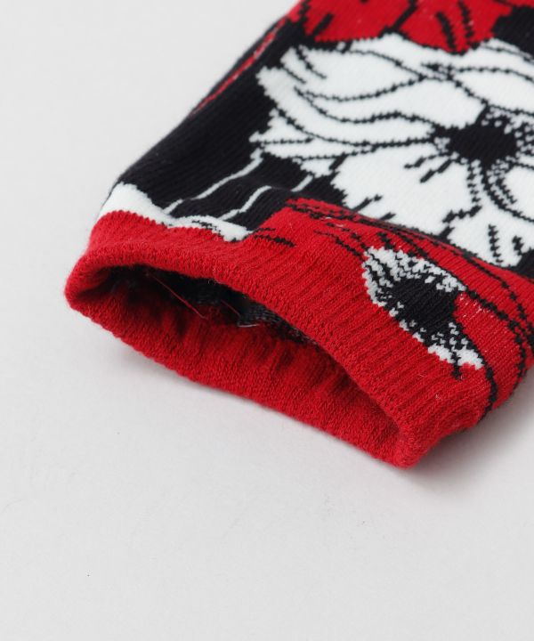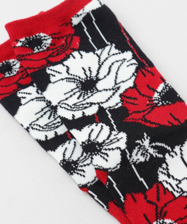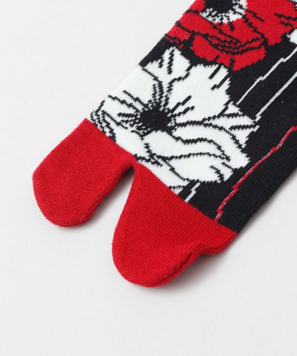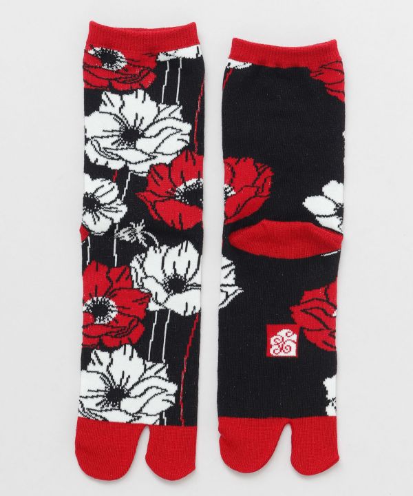 アネモネの花を大胆に配置した足袋靴下。日本人の足にしっかり馴染んで履きやすい足袋靴下。赤色と白色の花言葉は「あなたを愛しています」「希望」「期待」「真実」