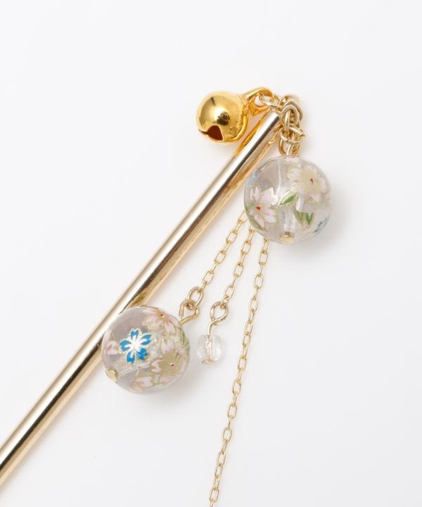 和柄のビーズとメタリックパーツを使用したかんざし。扱いやすい太さの軸で、髪の毛をしっかりとまとめることが出来ます。シンプルながらもしっかりとした存在感があり、様々なシーンやコーディネートに合わせられます。