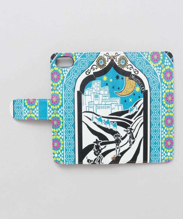 【旅するカラベラシリーズ】メキシコの「死者の祭り」で有名なカラベラが、メキシコ、モロッコ、インド、日本を旅している様子をイメージしました。手帳型。 対応機種:iPhoneSE(第2,第3世代)、iPhone8、iPhone7