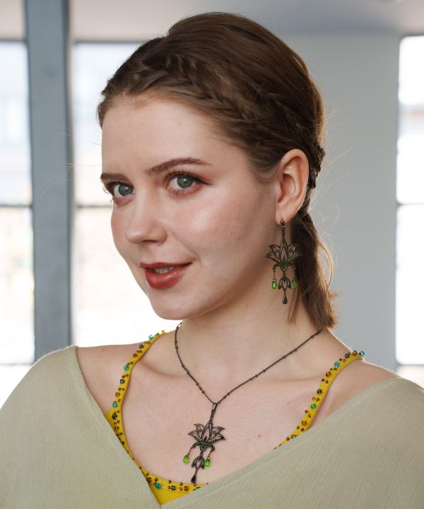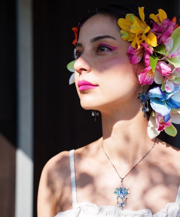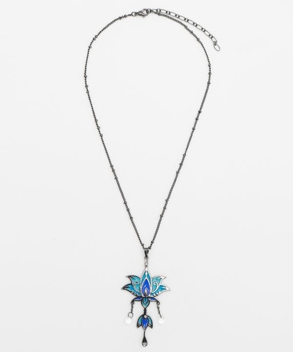 世界各国に咲くロータスをモチーフとしたステンドグラスのネックレス。ロータスは【清らかな心】の象徴。日の光が入ることでステンドグラスが輝き、より印象的に。