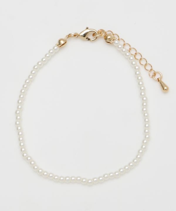 パール風ビーズのシンプルなブレスレット。コーディネートに合わせやすい細めのデザインです。お持ちのブレスレットと重ね付けも楽しめます。