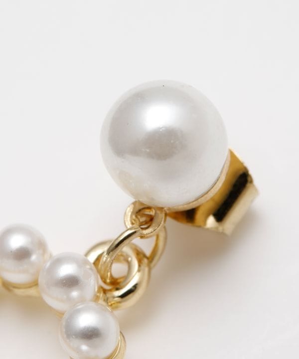 サイズ違いのパール風ビーズを組み合わせた、レトロなピアス。ゆらゆらと揺れるサークルモチーフがおしゃれ。