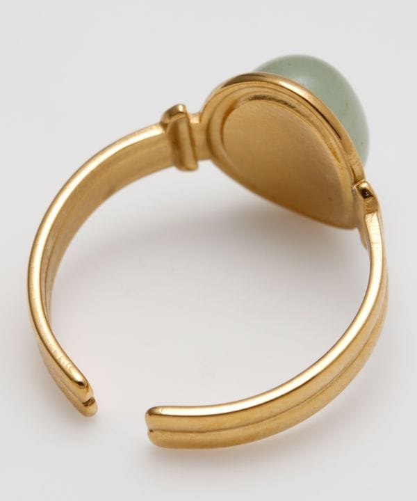 つやつやと輝く、ビンテージ風のストーンがおしゃれなリング。落ち着いた色合いで、コーディネートのワンポイントにぴったり。