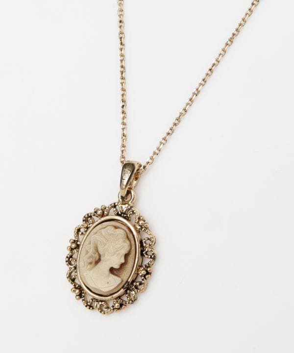 カメオモチーフのネックレス。アンティークのような風合いが魅力的。コーディネートにプラスするだけで、レトロな雰囲気をお楽しみいただけます。