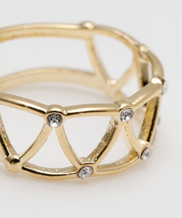 ネット模様のリング。きらりと輝くジュエルがアクセント。どんなコーディネートにも合わせやすいデザインです。